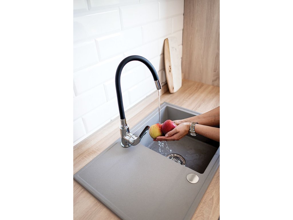 Baterie ELZA je vybavena flexibilní výlevkou, která umožňuje snadné nasměrování proudu vody přesně tam, kde je potřeba. Maximální dosah výlevky až 360 mm zajišťuje pohodlné používání při mytí nádobí, oplachování potravin i napouštění větších nádob. Toto řešení je vhodné jak pro jednodřezová, tak i dvoudřezová uspořádání.
