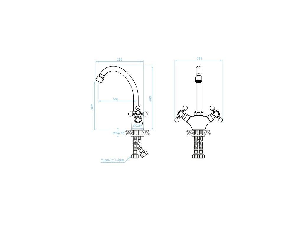 - délka připojovacích hadiček: 400 mm