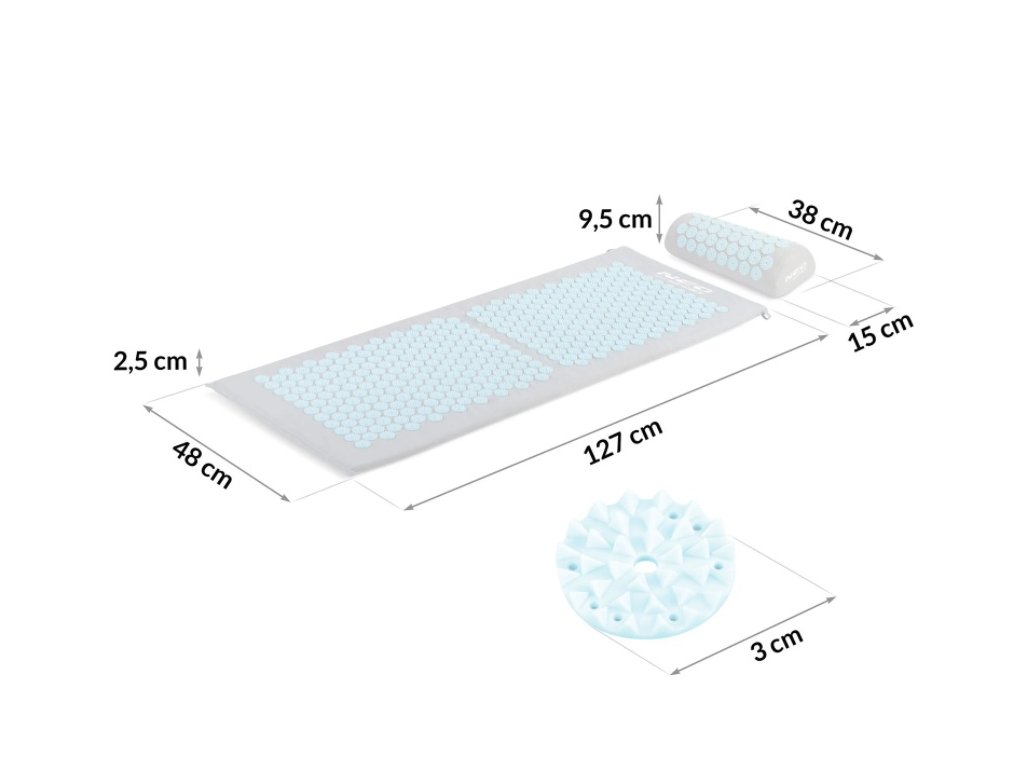 Akupresurní set, který pomáhá ulevit od bolesti pohybového aparátu. Ideální pomocník v boji s běžnými onemocněními jako je nespavost, stres, deprese, ischias nebo zažívací potíže. Pomáhá při léčbě abnormalit a chorob páteře, stejně jako defektů držení těla. Zlepšuje prokrvení pokožky, podporuje krevní oběh a příznivě působí na krevní tlak.