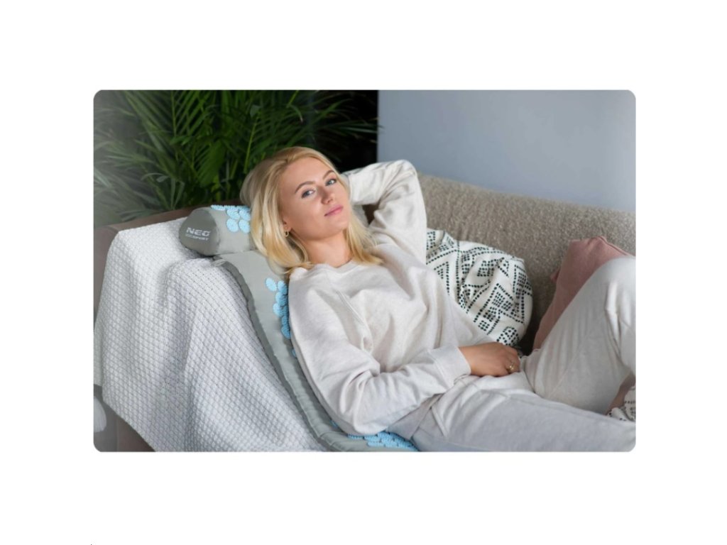Tisíce inteligentně umístěných polyamidových trnů umístěných na podložce, ideálně stimulují tlakové body, které zlepšují krevní oběh, uklidňují napnuté svaly a snižují stres. Problémy oběhového systému často způsobují bolesti v různých částech těla. Eliminuj je pomocí naší sady!
