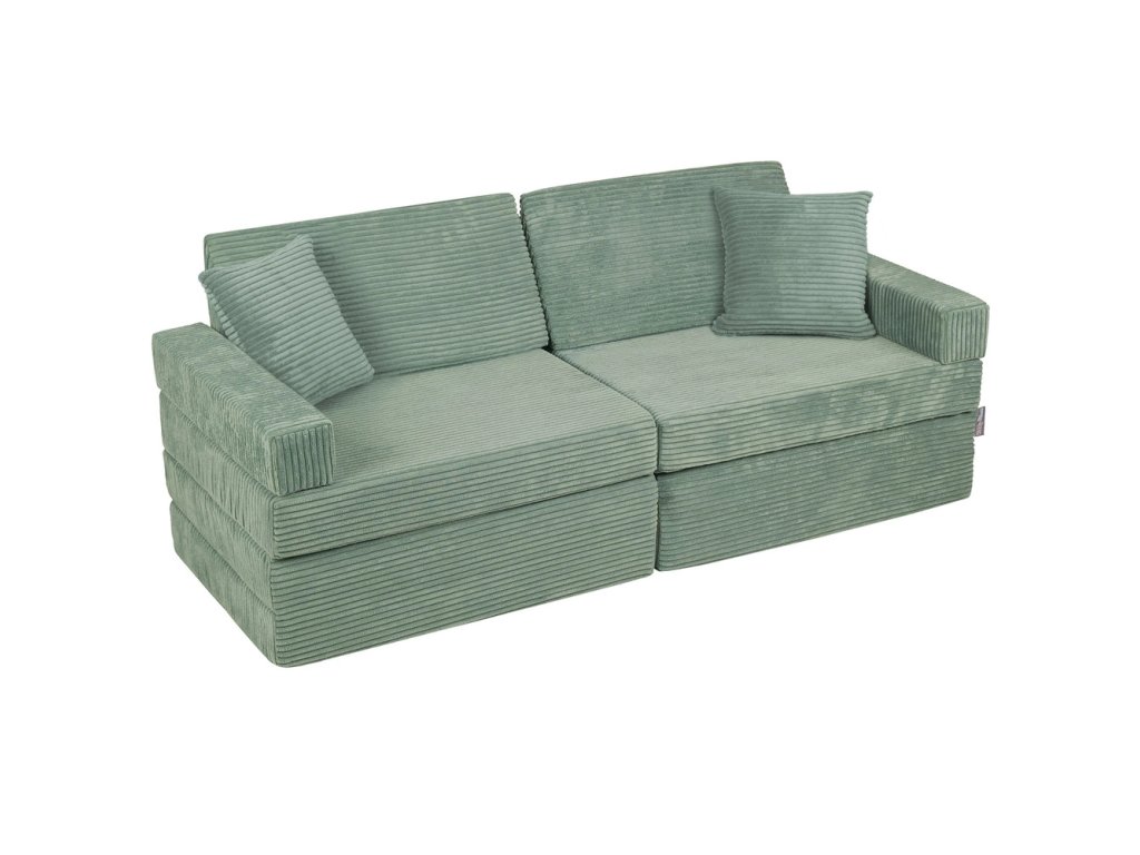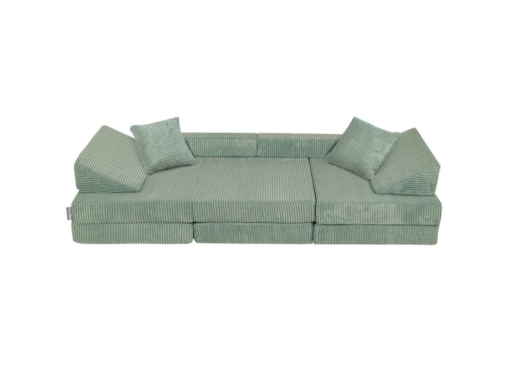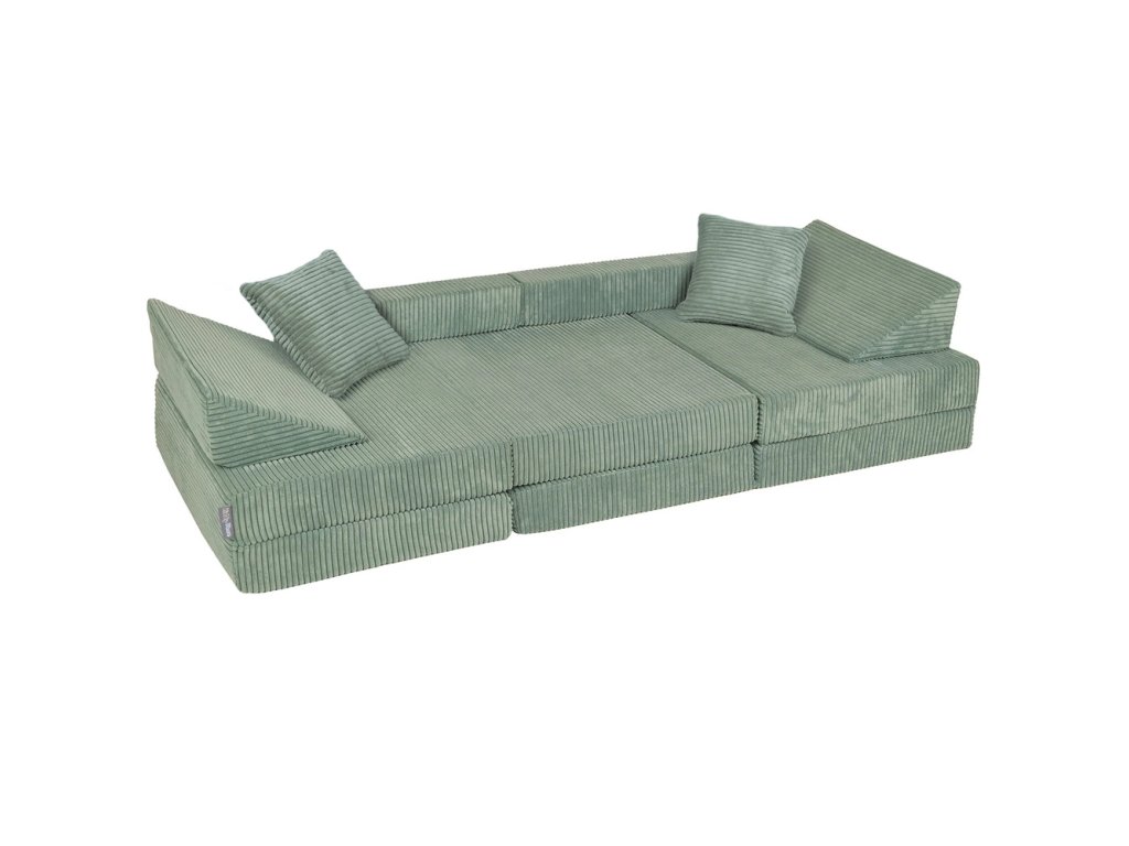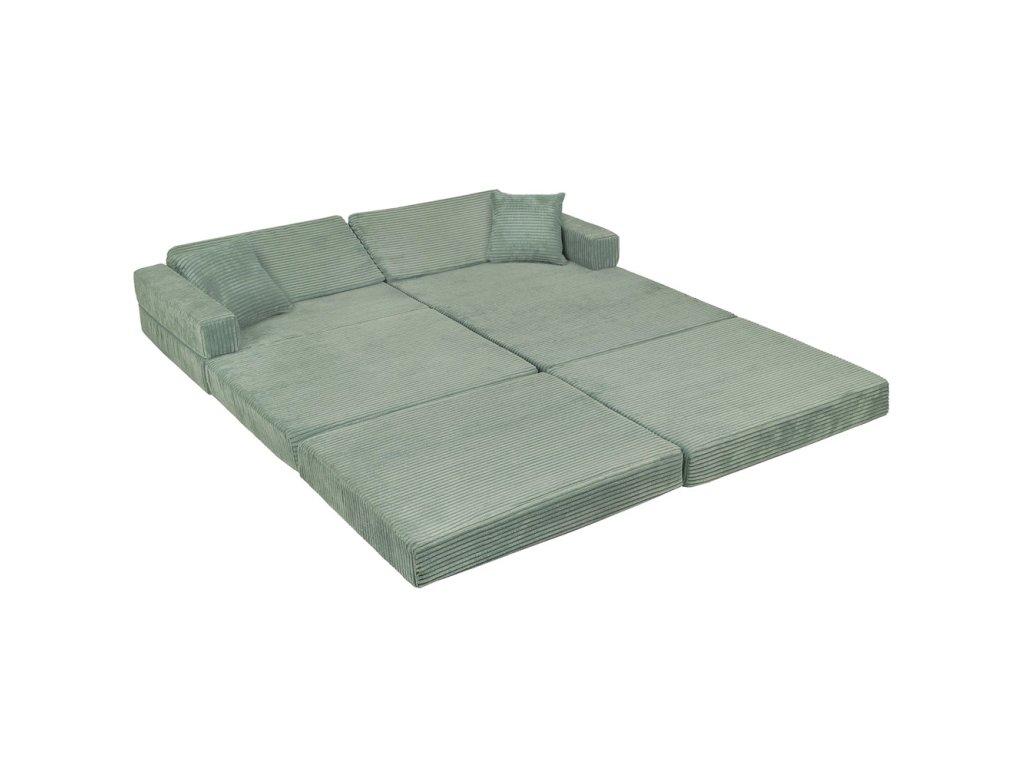 Díky 6 prvkům v sadě a dodatečným polštářkům 30 × 30 cm nabízí pohovka široké možnosti uspořádání – může sloužit jako klasická sedačka, lehátko, matrace, taburet nebo i jako základna pro dětské hry. Perfektní pro přespávání, odpočinek, čtení i kreativní hraní v dětském pokoji.