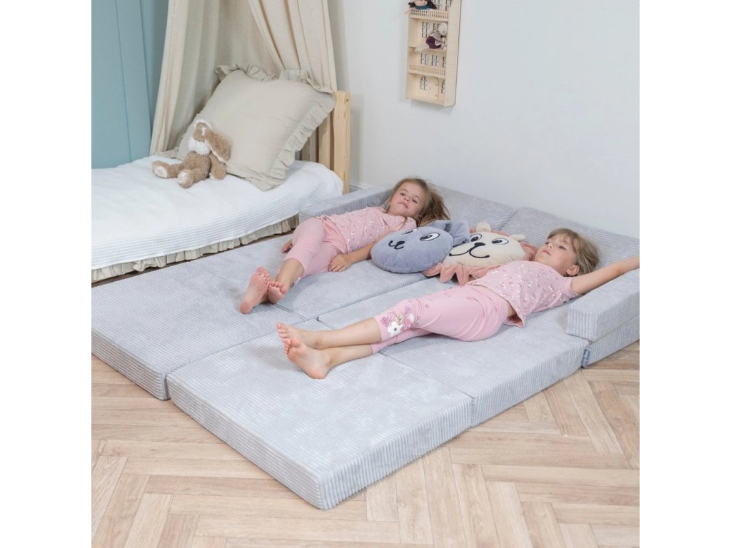 Díky skládací konstrukci lze snadno přeměnit na pohodlnou matraci nebo taburet, a proto je ideální na přespání s kamarády, čtení knih, sledování pohádek, stavění bunkrů nebo líná odpoledne.
