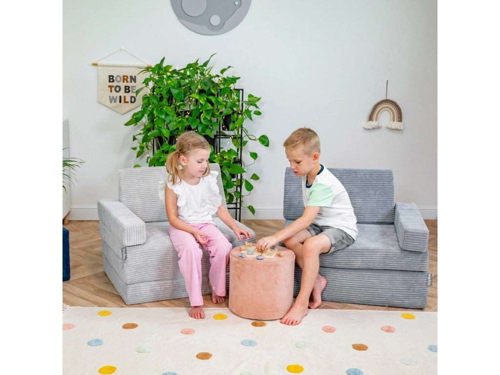 Pěnové křeslo RIBBI – světle šedé je dokonalým spojením pohodlí, praktičnosti a stylu – oblíbí si ho děti i rodiče!