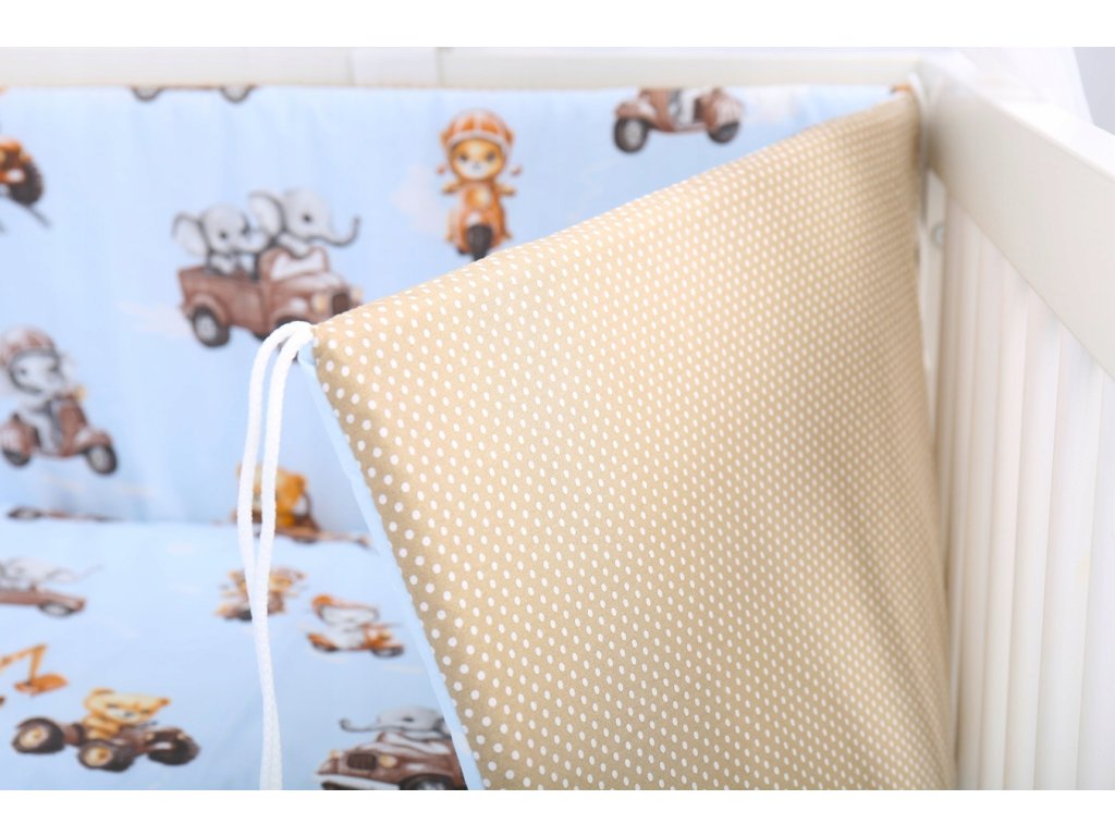 Ochranný mantinel (límec) okolo postýlky pro bezpečnější pohyb dítěte. Límec je do 1/2 postýlky 120x 60 cm, výška 30 cm. Přivazuje se k tyčkám. Pokud by Vám nestačil límec do půlky postýlky, lze si dát dva proti sobě a mít tak ochranu po celé postýlve.