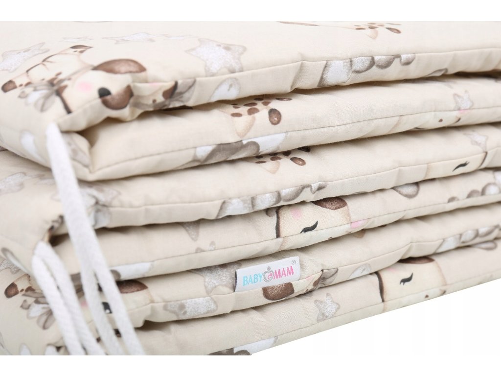 Ochranný mantinel (límec) okolo postýlky pro bezpečnější pohyb dítěte. Límec pasuje na celou plochu postýlky 120x 60 cm, výška 30 cm. Přivazuje se k tyčkám.