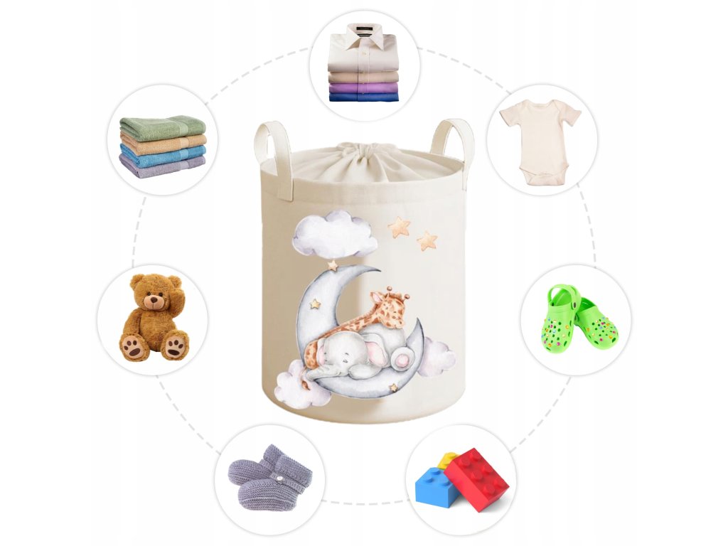 Košík bez problémů pojme hračky, plyšové hračky, stavebnice, knížky, oblečení, polštáře i další doplňky každodenního použití.