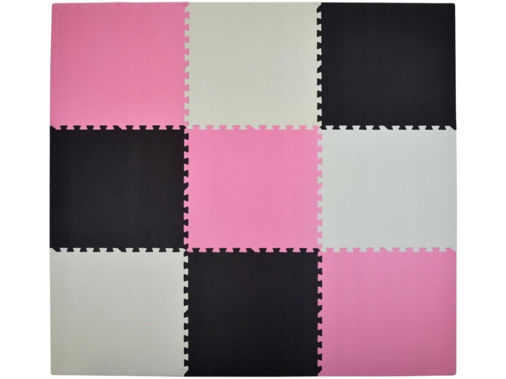 Pěnový koberec MAXI 9 ks 180x180x1 cm růžovo-černo-bílý