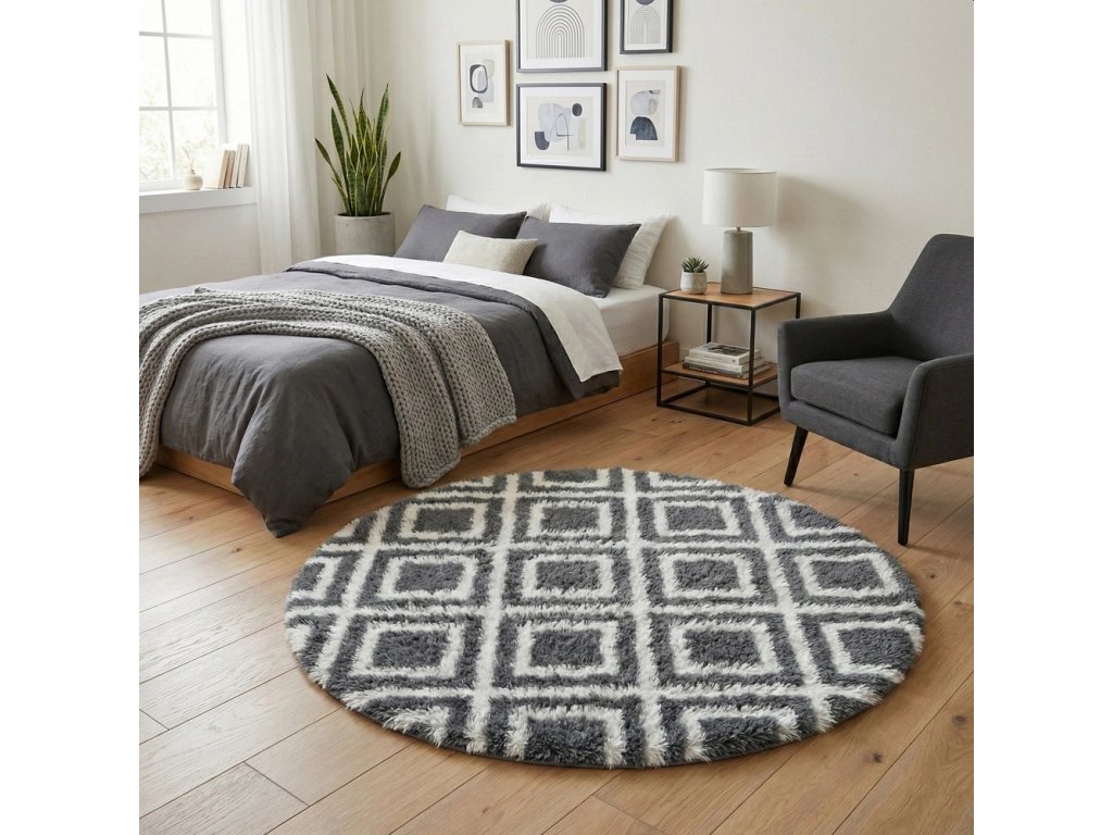 Plyšový kulatý koberec MARRAKESH - černý