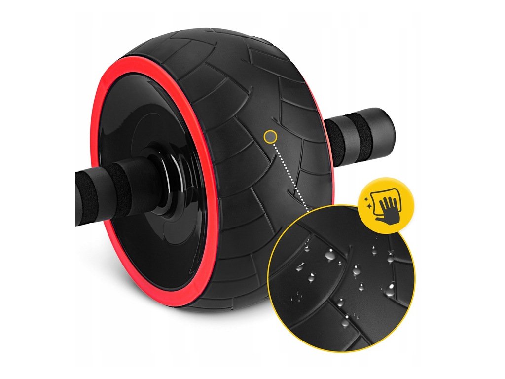 Široké cvičební kolečko AB Wheel XL od společnosti je kompaktní zařízení s jednoduchým, ale důmyslným designem. Pomáhá udržovat správné držení těla a chránit páteř před přetížením. AB Wheel tvoří velké, mimořádně široké kolo, jehož osu představuje robustní ocelová tyč odolná vůči tlaku těla. Rukojeti jsou potaženy pěnou, která zajišťuje bezpečné uchopení během tréninku. Jejich protiskluzové vlastnosti navíc absorbují vlhkost z rukou, což zvyšuje komfort a hygienu při cvičení. Díky širokému pogumovanému běhounu kolečko nabízí vynikající přilnavost k povrchu, což zaručuje stabilitu a bezpečnost během tréninku.