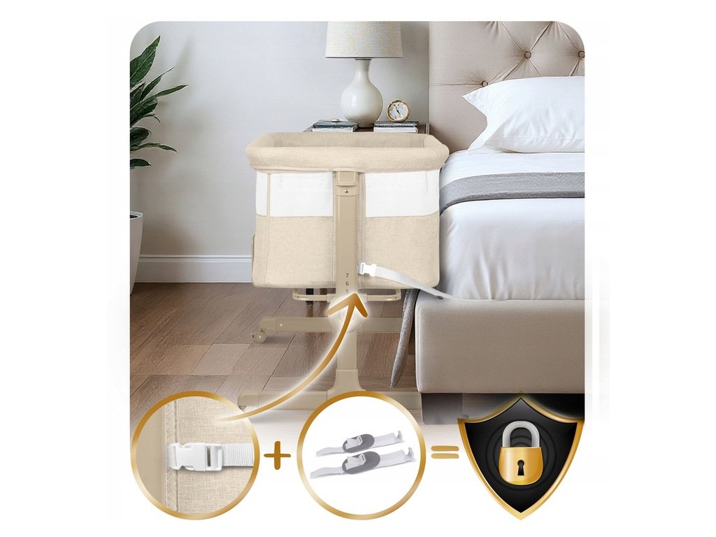 - stabilní konstrukce s upevňovacími popruhy k rodičovské posteli,