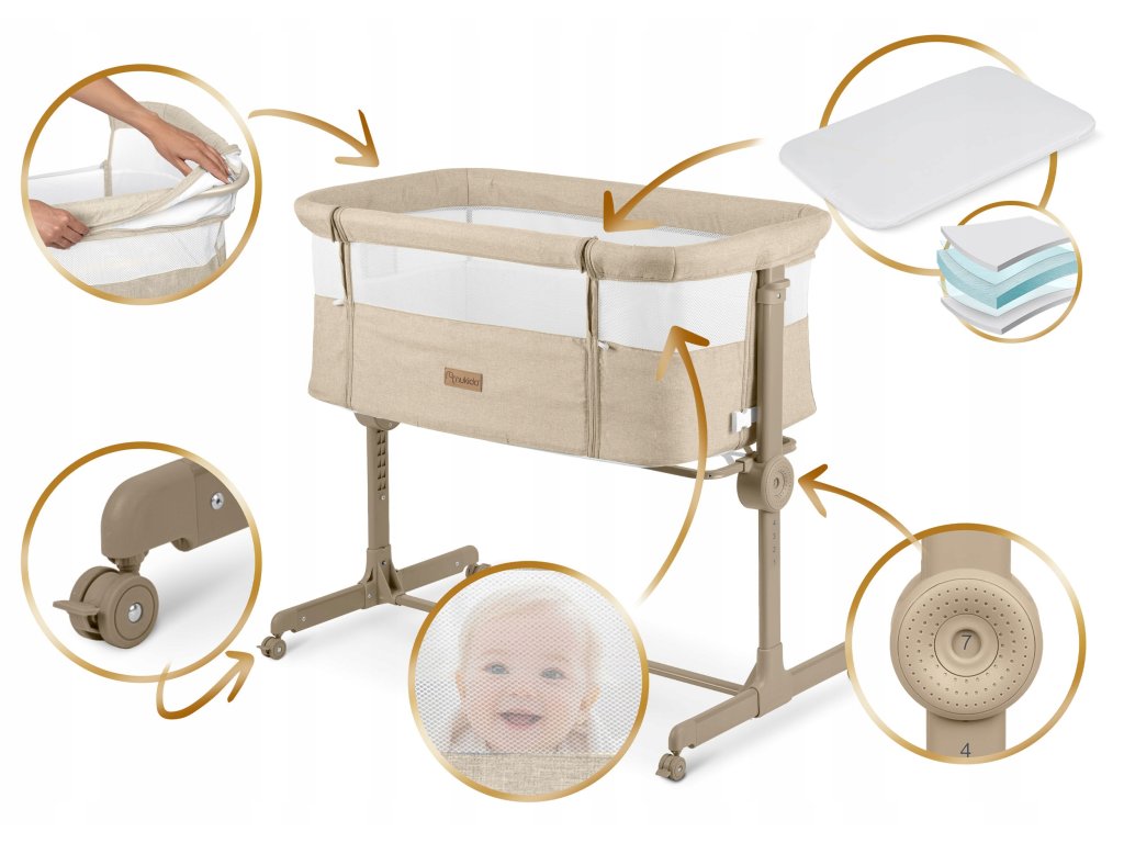 Dětská přístavná, skládací, cestovní postýlka Sleep&Go 0–5 m, 9 kg – béžová