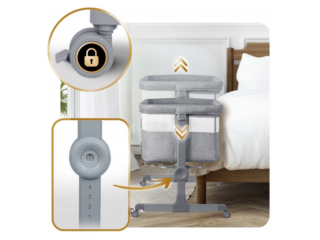 - Mobilita – díky kolečkům lze postýlku volně přesouvat po domě.