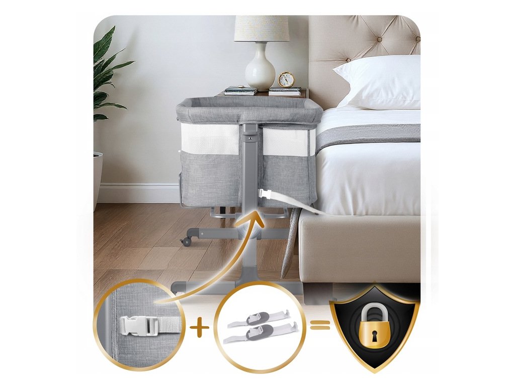 - stabilní konstrukce s upevňovacími popruhy k rodičovské posteli,