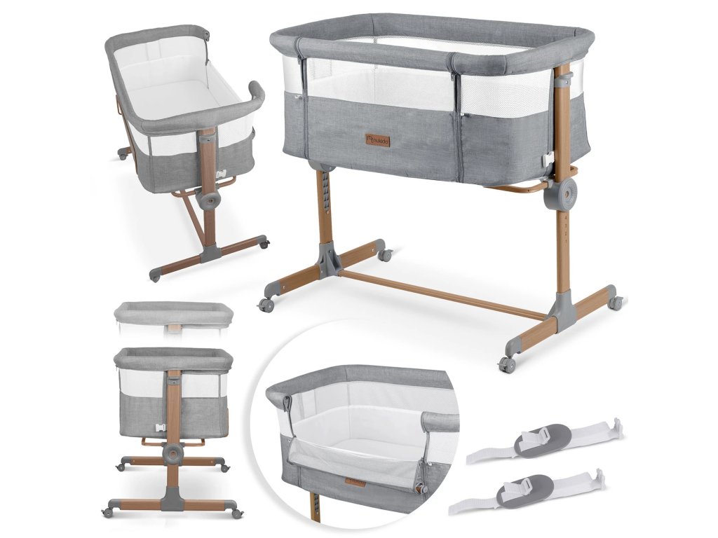 Dětská přístavná, skládací, cestovní postýlka Sleep&Go 0–5 m, 9 kg – šedá