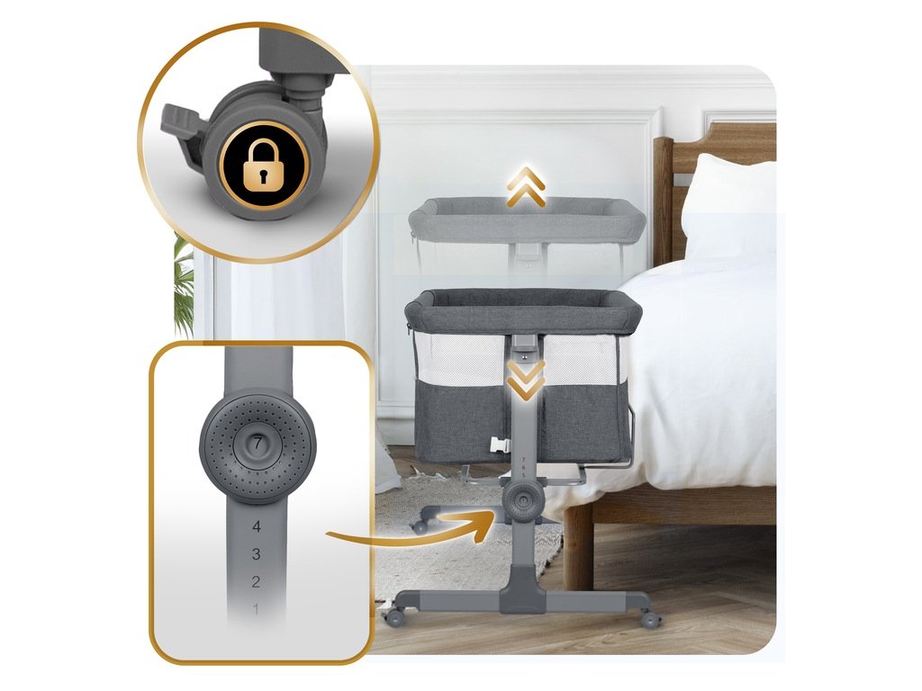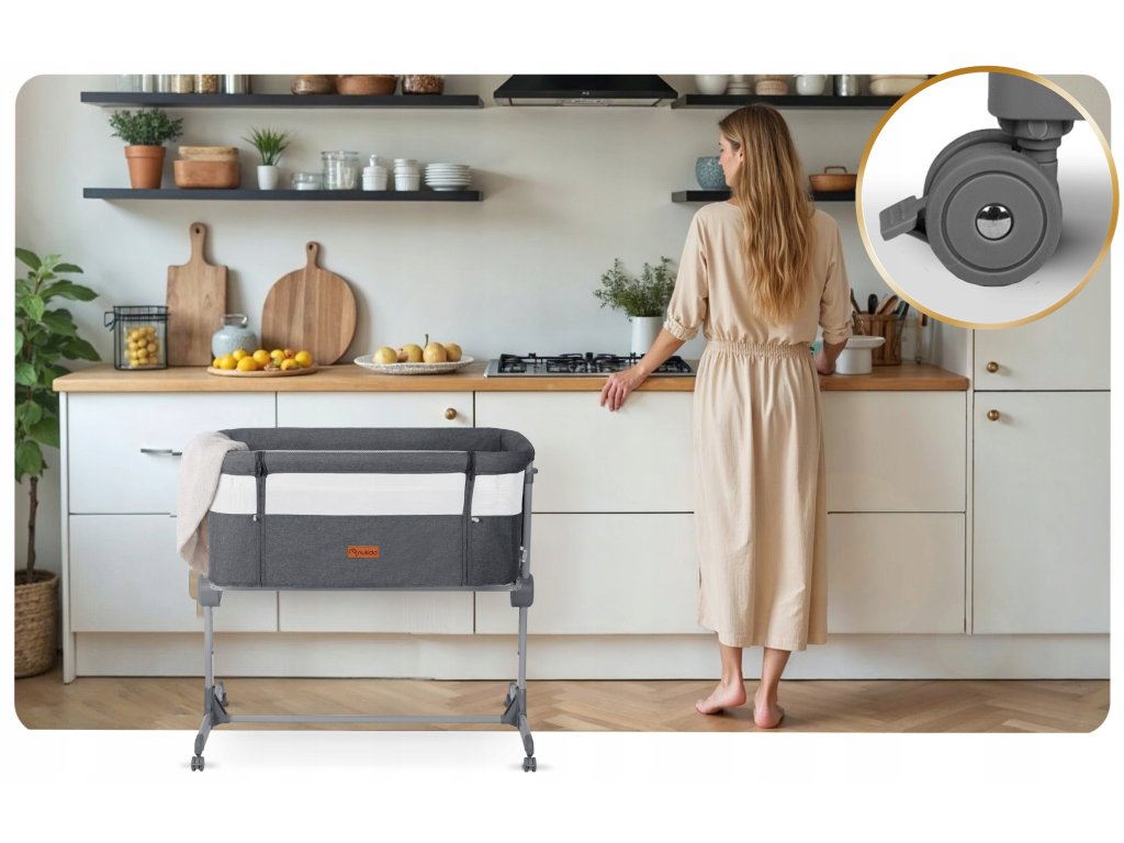 - Mobilita – díky kolečkům lze postýlku volně přesouvat po domě.
