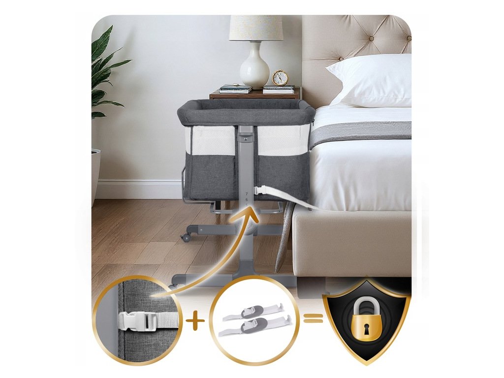 - stabilní konstrukce s upevňovacími popruhy k rodičovské posteli,