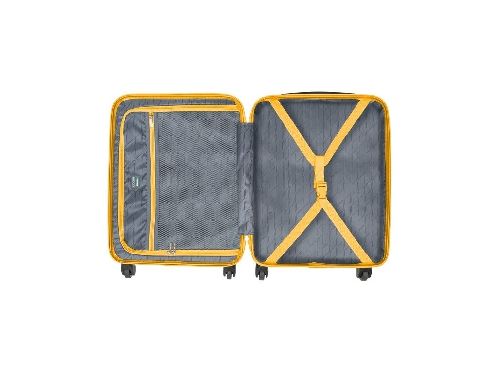 Hlavní přihrádka kufru je rozdělena na dvě části. Přední přihrádka se uzavírá klopou se síťovanou kapsou, která výrazně usnadní organizaci vašich zavazadel. Druhá přihrádka má upevňovací popruhy pro připevnění oblečení, aby dorazilo na místo určení v perfektním stavu. Všechny kovové prvky jsou stříbrné barvy.
