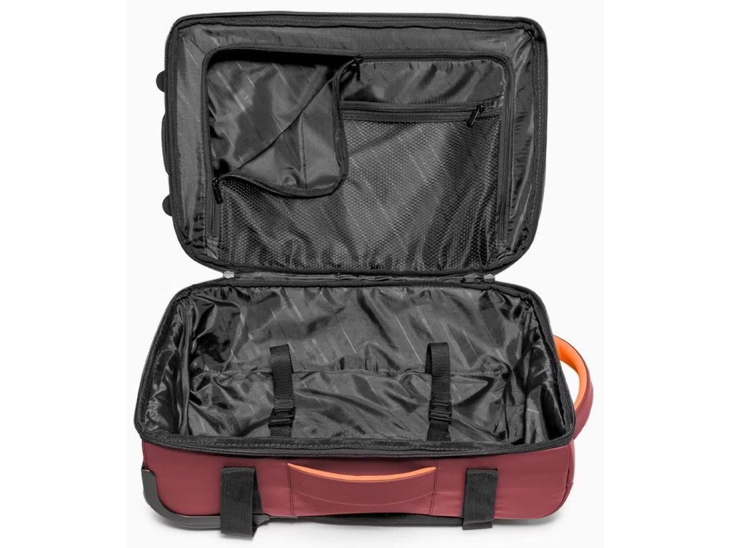 Pečlivě promyšlené vnitřky kufrů zajistí pohodlné balení a pořádek během vaší cesty. Hlavní přihrádka je rozdělena na dvě části: první má nastavitelné popruhy, které zabraňují posunu obsahu při cestování, a druhá se uzavírá přihrádkou na zip s velkou síťovanou kapsou. Celé se to zapíná na dvě pevné přezky, které zavazadlo nejen dodatečně zajistí proti otevření, ale také pomáhají stlačit obsah a tím zmenšit rozměry kufrů.