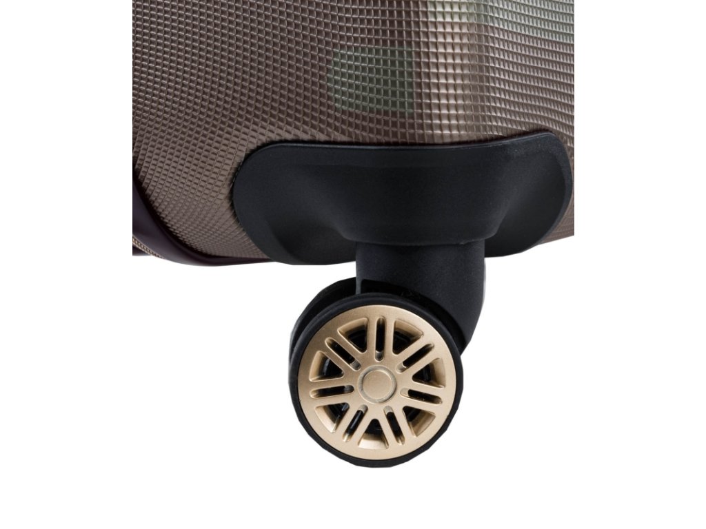 Díky modernímu systému pojezdu (čtyři dvojitá, o 360 stupňů otočná kolečka) je kufr obratný a jezdí perfektně bez ohledu na kvalitu povrchu. Výsuvný dvoustupňový rám, rovněž v poutavé zlaté barvě, s nastavitelnou výškou vám umožní optimálně upravit délku rukojeti podle vašich osobních preferencí.