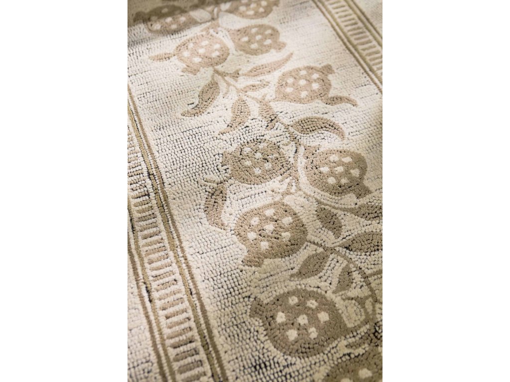 Každý koberec Sanderson je skutečným uměleckým dílem vyrobeným ze 100% přírodní vlny, která zaručuje vysokou odolnost, pružnost a výjimečné pohodlí při používání. Ručně tuftovaný vlas o výšce přibližně 1,7 cm je měkký na dotek, zatímco jeho působivá gramáž 4500 g/m² poskytuje luxusní pocit pod nohama i vynikající tepelnou a zvukovou izolaci.