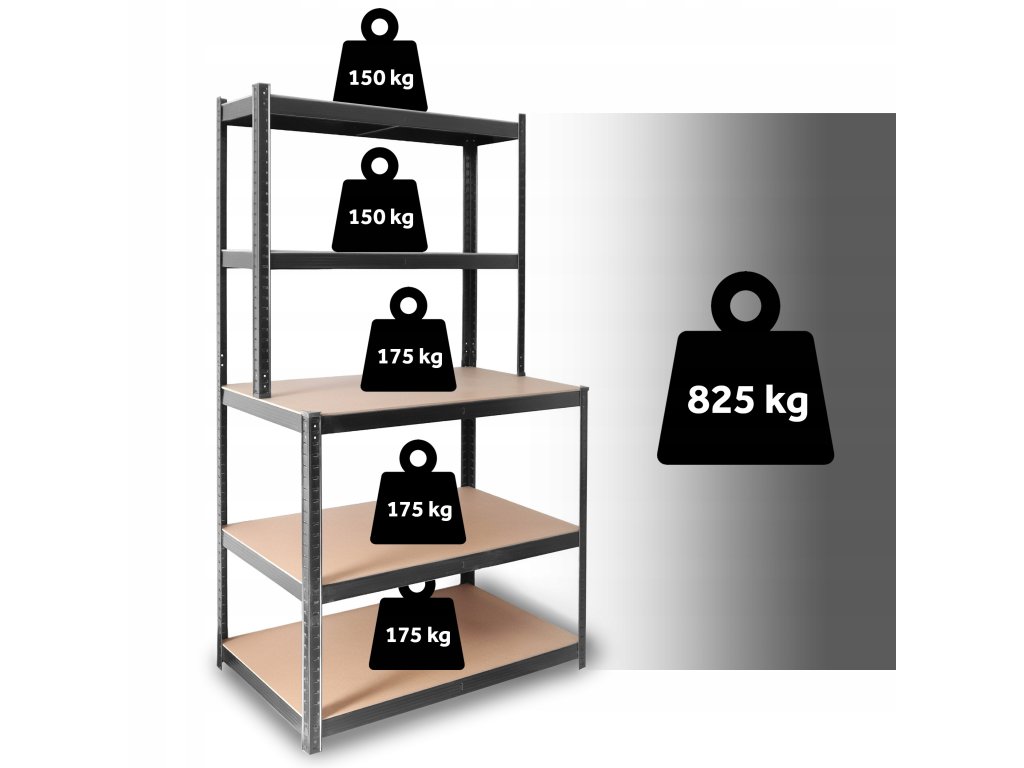 Každá z pěti polic unese až 175 kg, celková nosnost celé konstrukce činí 825 kg.