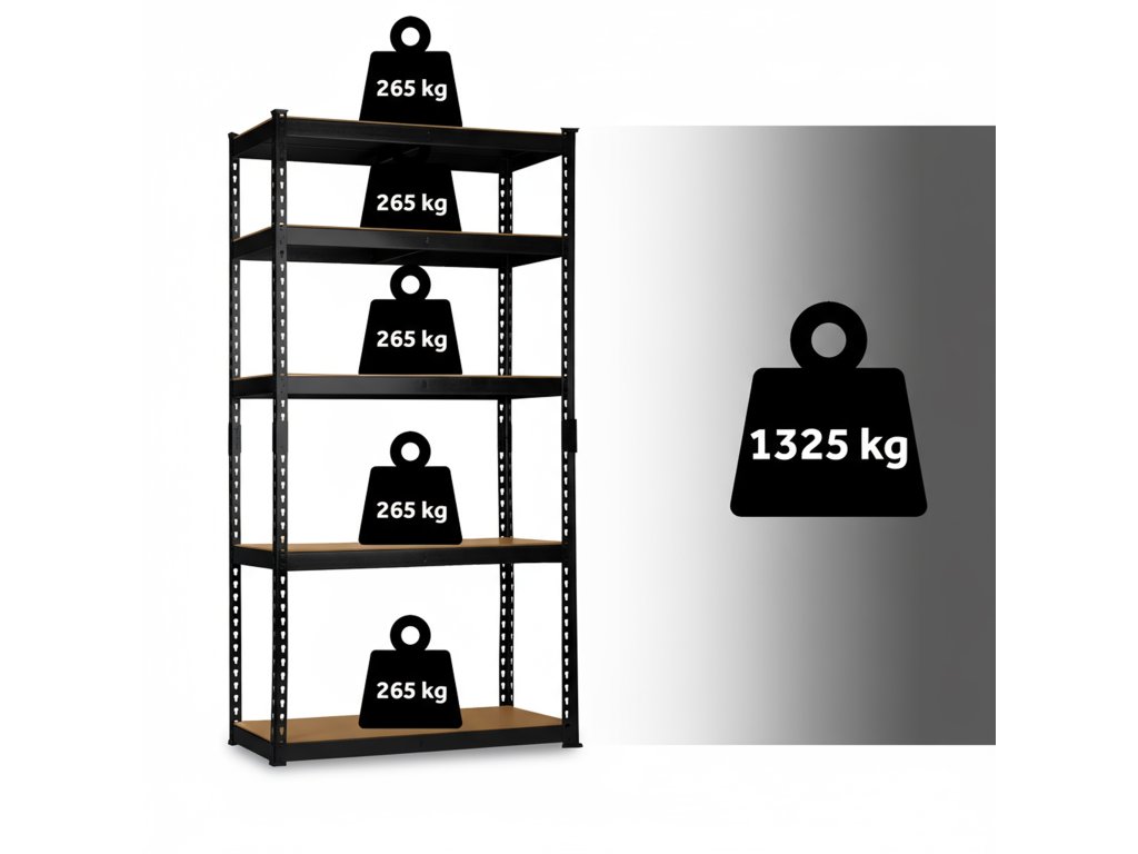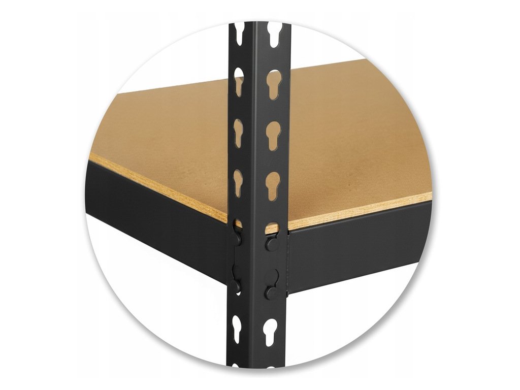 Regál je vybaven masivní kovovou konstrukcí a odolnými policemi z MDF, které zajišťují vysokou stabilitu i při plném zatížení. Je navržen tak, aby odolal každodennímu používání a unášel i těžší předměty, nářadí, krabice a zásoby.