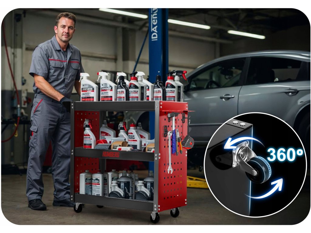 Model GARAGE PRO (HM-515) je robustní třípatrový vozík na nářadí, který nabízí vysokou stabilitu, funkčnost a maximální praktičnost. Skvěle se hodí do profesionálních servisů i domácích garáží – všude tam, kde je potřeba pořádek, mobilita a rychlý přístup k nářadí.