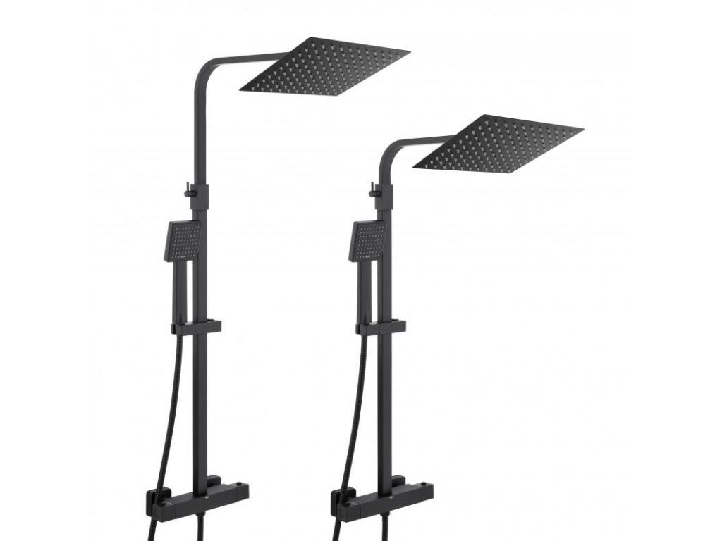 Nástěnná sprchová souprava FRESCO s dešťovou hlavicí a termostatickou baterií – černá