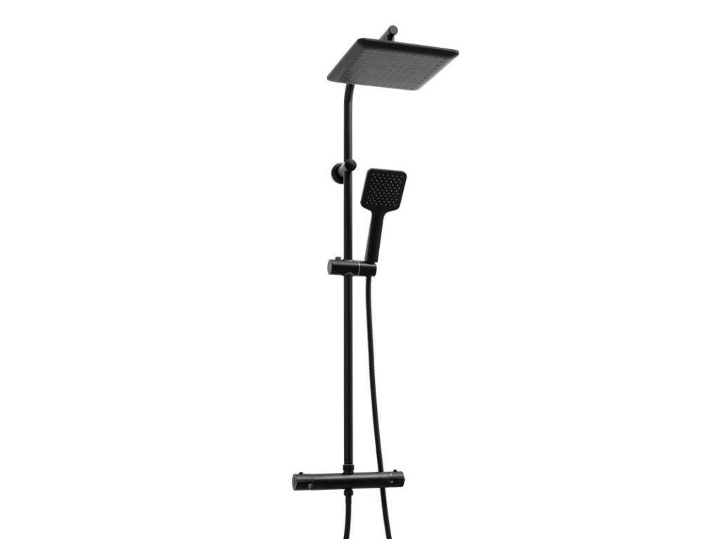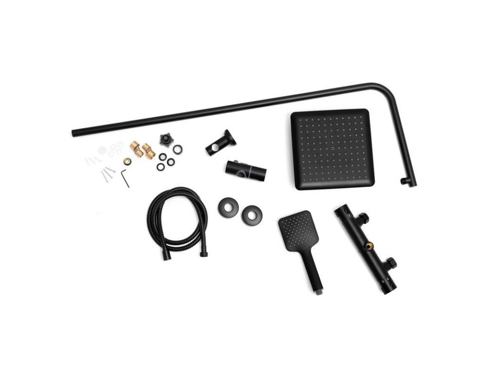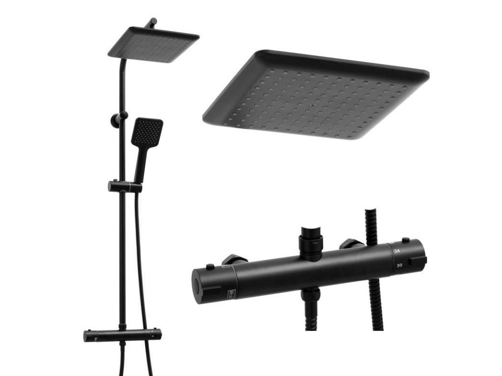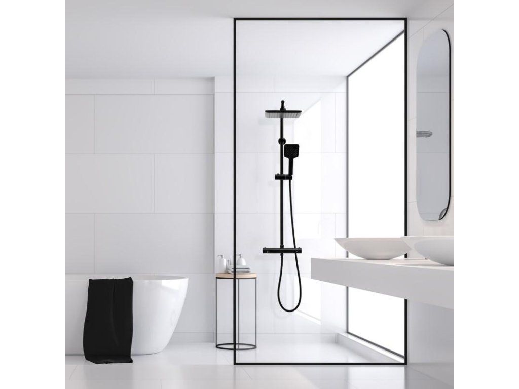 Nástěnná sprchová souprava PALLENE s dešťovou hlavicí a termostatickou baterií – černá