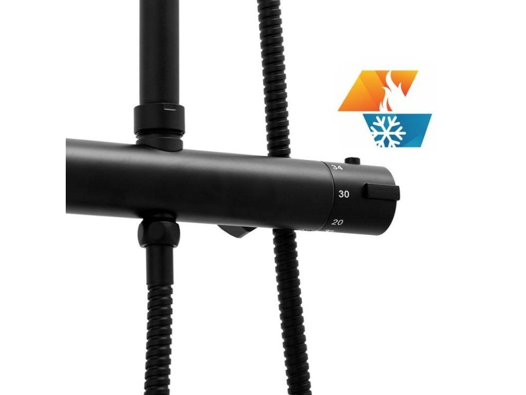 Černý sprchový panel je vybaven termostatickou hlavicí, která umožňuje přesné nastavení teploty vody. Díky tomu si můžete užít pohodlnou a bezpečnou sprchu bez obav z náhlých výkyvů teploty.