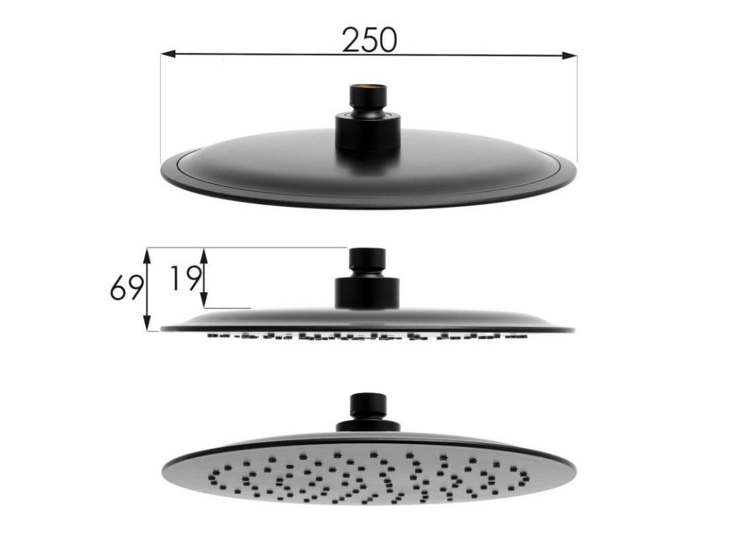 - široká dešťová hlavice o průměru 25 cm,