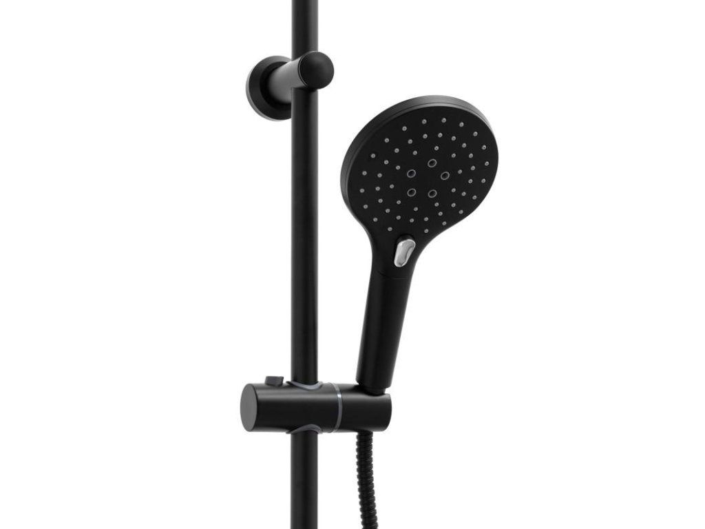 Sprchová souprava vypadá výjimečně díky módní černé barvě, která dodává koupelně elegantní charakter. Vyniká mezi standardními řešeními a dodává interiéru nádech luxusu a modernosti.