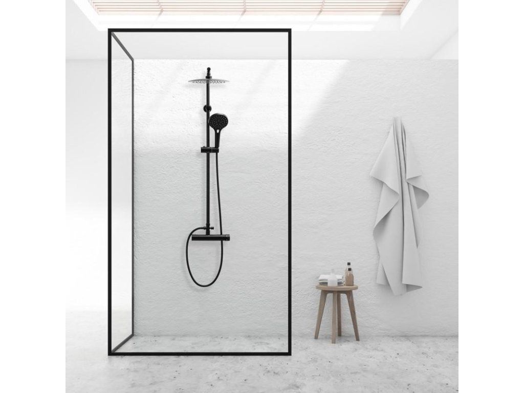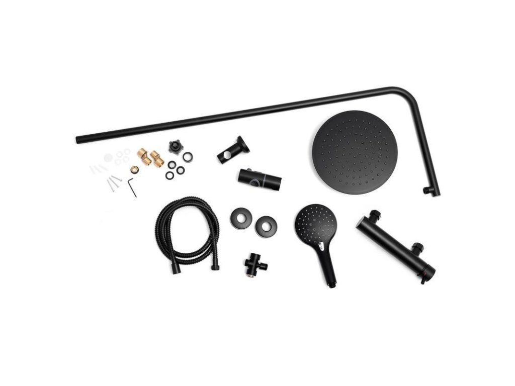 Nástěnná sprchová souprava TAYGETE s dešťovou hlavicí a sprchovou baterií – černá
