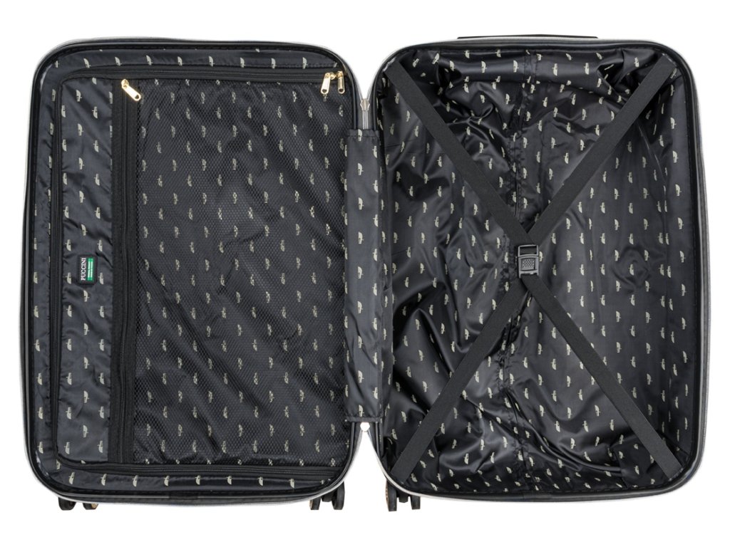 Kufr je vyroben z kvalitního ABS materiálu, vyznačujícího se vysokou tvrdostí. Je odolný, obratný a zároveň prostorný. Uvnitř je vypodšívkovaná odolnou, snadno čistitelnou elegantní podšívkou. Ideální pro mnoho výletů, soukromých i služebních.