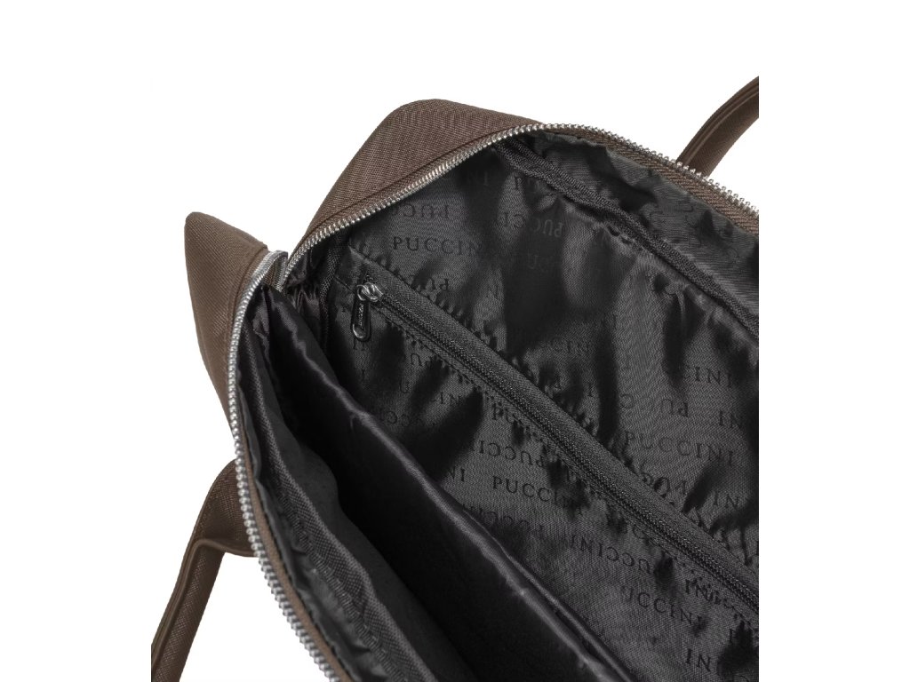 Přední kapsa na zip a jemné prošívání z eko kůže dodávají tašce moderní a stylový vzhled.