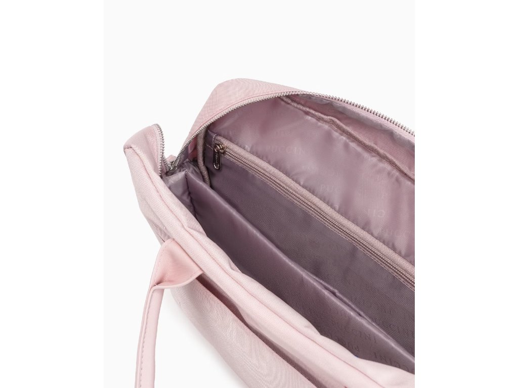 Přední kapsa na zip a jemné prošívání z eko kůže dodávají tašce moderní a stylový vzhled.