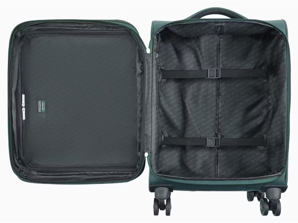 Pečlivě promyšlený vnitřek kufru zajišťuje pohodlné balení a pořádek během cesty. Díky popruhům, které zabraňují pohybu obsahu, si můžete být jisti, že vaše oblečení a osobní věci dorazí na místo určení v perfektním stavu, a co víc, na vnitřní straně uzavírací klopy kufru je velká síťovaná kapsa. Na předním panelu jsou navíc dvě funkční kapsy na zip: menší a větší. Nepopiratelnou výhodou prezentovaných kufrů z kolekce Perugia je možnost navýšení kapacity ve všech velikostech kufrů (velký, střední i kabinový). Díky použití přídavného zámku může každý kufr zvýšit svou kapacitu až o 20 %. Vnitřek kufru je vystlán polyesterovým materiálem s logem.