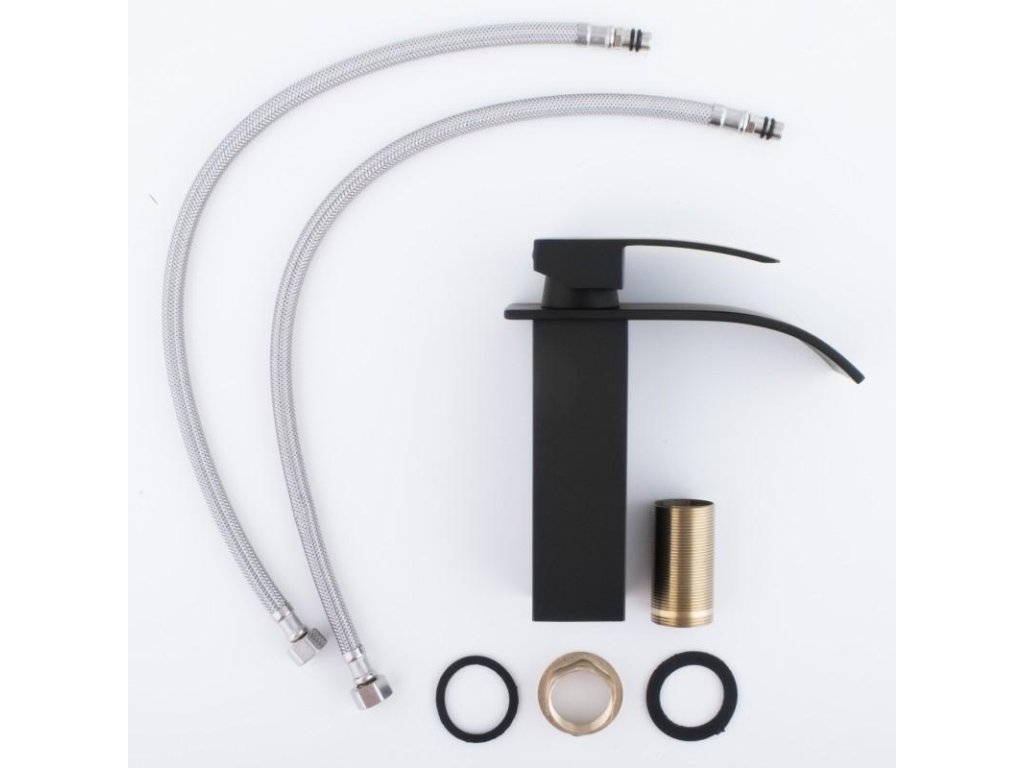 - dvě 50 cm (F 3/8") připojovací hadice, opletené nerezovou ocelí,