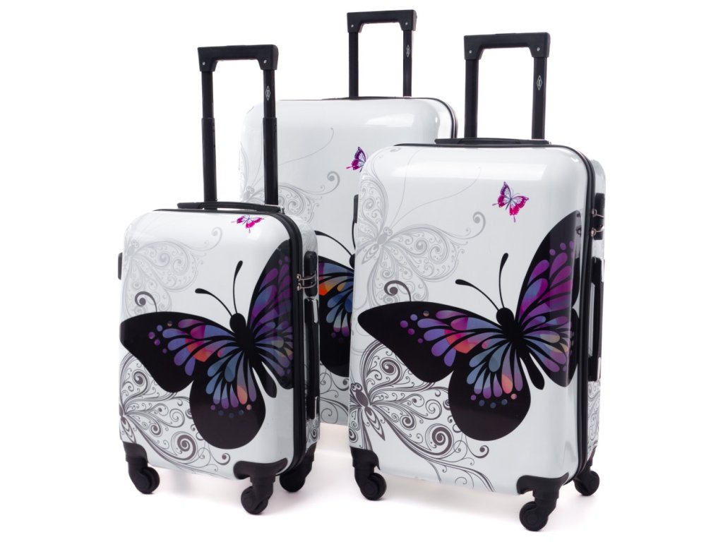 Velký cestovní kufr BUTTERFLY - bílý