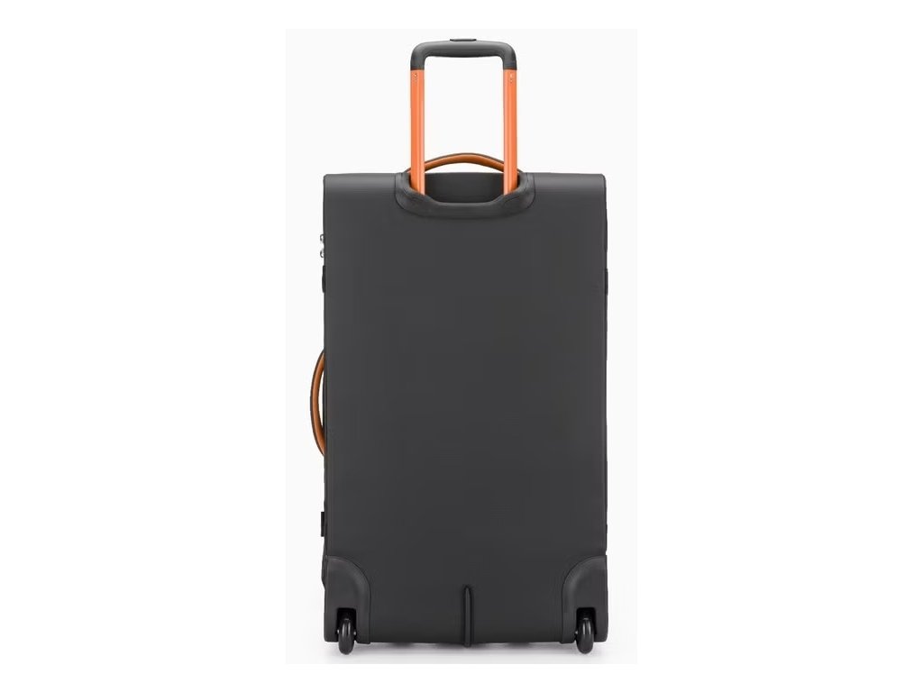 Kufry mají výsuvný, dvoustupňový rám v kontrastní barvě. Funkce nastavení výšky vám umožní optimálně upravit délku rukojeti podle vašich osobních preferencí. Na horní, boční a spodní straně jsou úchyty. Usnadňují zvedání zavazadel, nakládání do kufru, ukládání na polici ve vlaku nebo do přihrádky nad hlavou v letadle. Dvě velká kolečka jsou namontována tak, aby poskytovala maximální ochranu proti poškození, a další protilehlé nožičky činí kufr velmi stabilním.