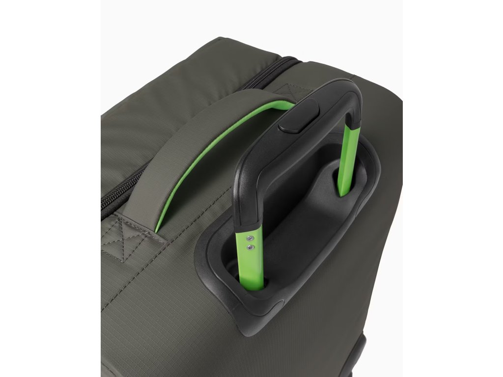 Kufry mají výsuvný, dvoustupňový rám v kontrastní barvě. Funkce nastavení výšky vám umožní optimálně upravit délku rukojeti podle vašich osobních preferencí. Na horní, boční a spodní straně jsou úchyty. Usnadňují zvedání zavazadel, nakládání do kufru, ukládání na polici ve vlaku nebo do přihrádky nad hlavou v letadle. Dvě velká kolečka jsou namontována tak, aby poskytovala maximální ochranu proti poškození, a další protilehlé nožičky činí kufr velmi stabilním.