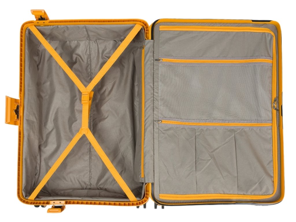Pečlivě promyšlený vnitřek kufru zajišťuje pohodlné balení a pořádek během cesty. Hlavní přihrádka je rozdělena na dvě části. První část má nastavitelná ramínka, která zabraňují klouzání šatní skříně. Druhá polovina je uzavřena přihrádkou na zip se dvěma kapsami na zip. Kufr má navíc dlouhou funkční kapsu na zip. Komory jsou lemovány elegantní podšívkou se značkou Puccini.